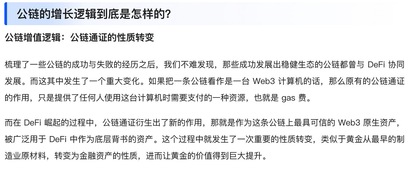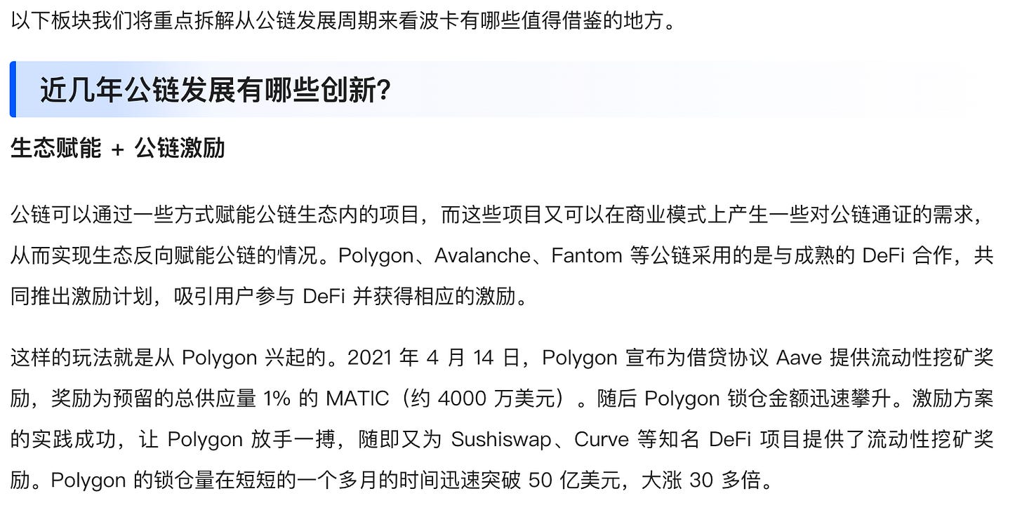 除此以外,团队还颇为贴心地分享了衍生思考的一些内容,如「近几年公链发展有哪些创新?」「公链的增长逻辑到底是怎样的?」。